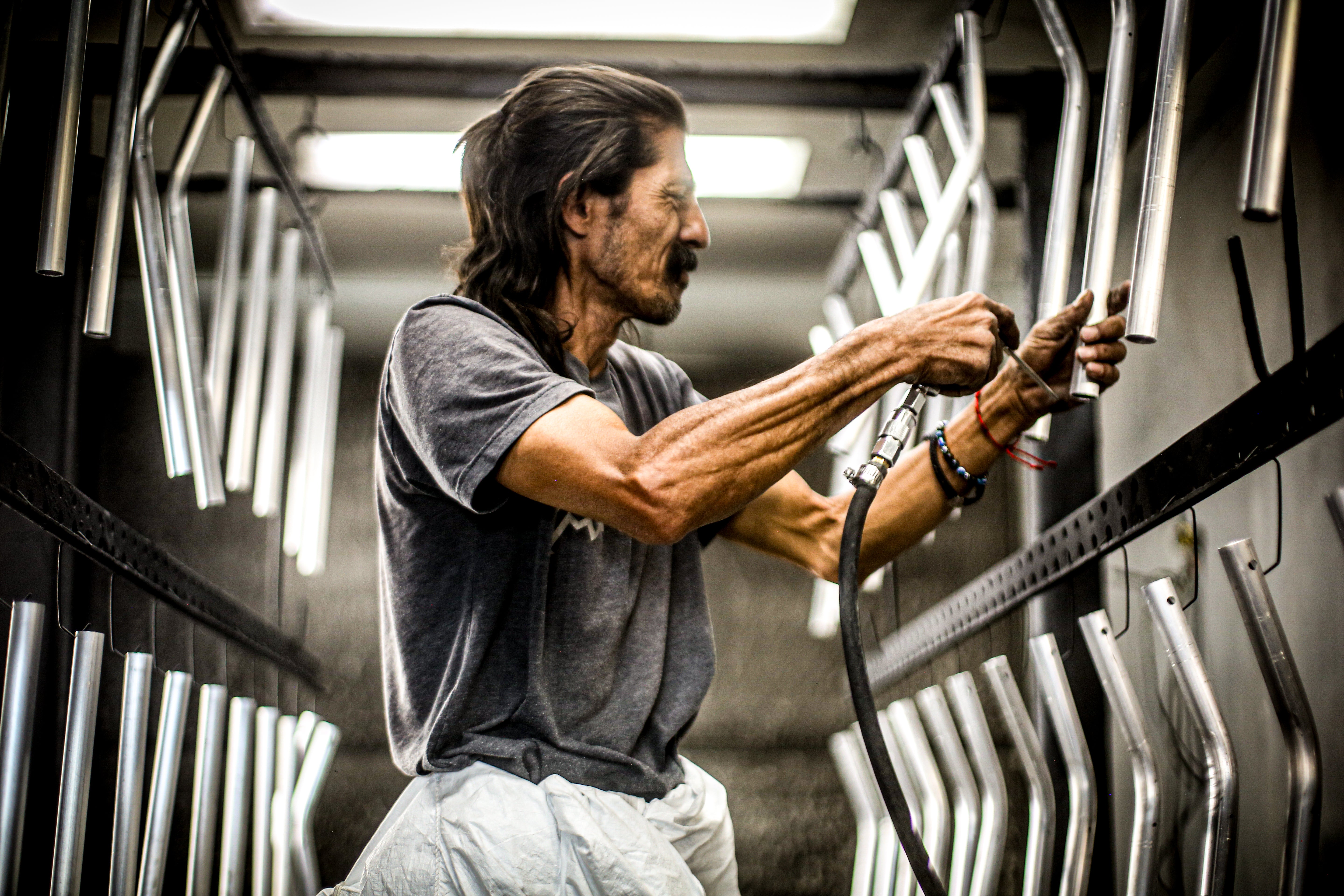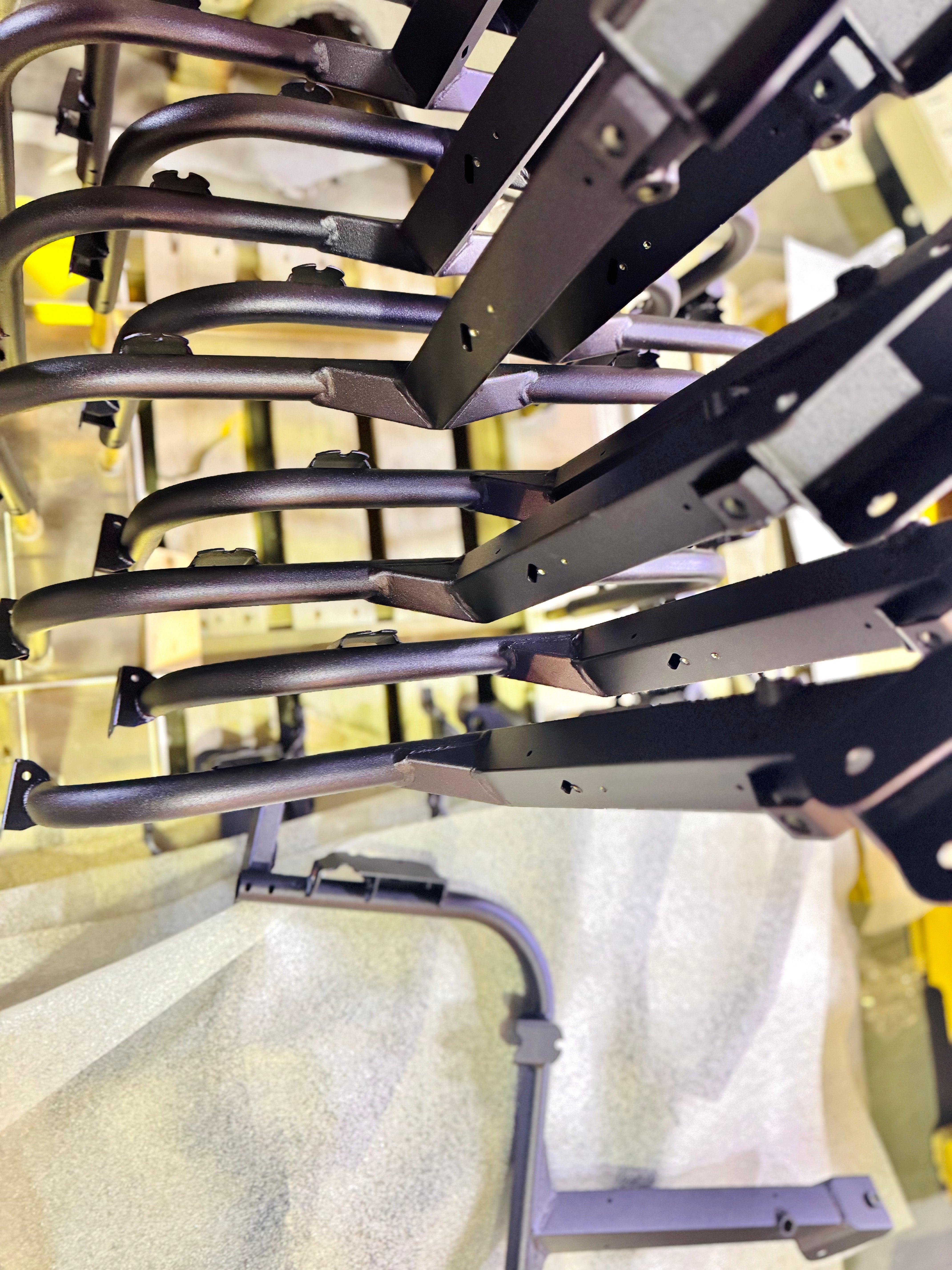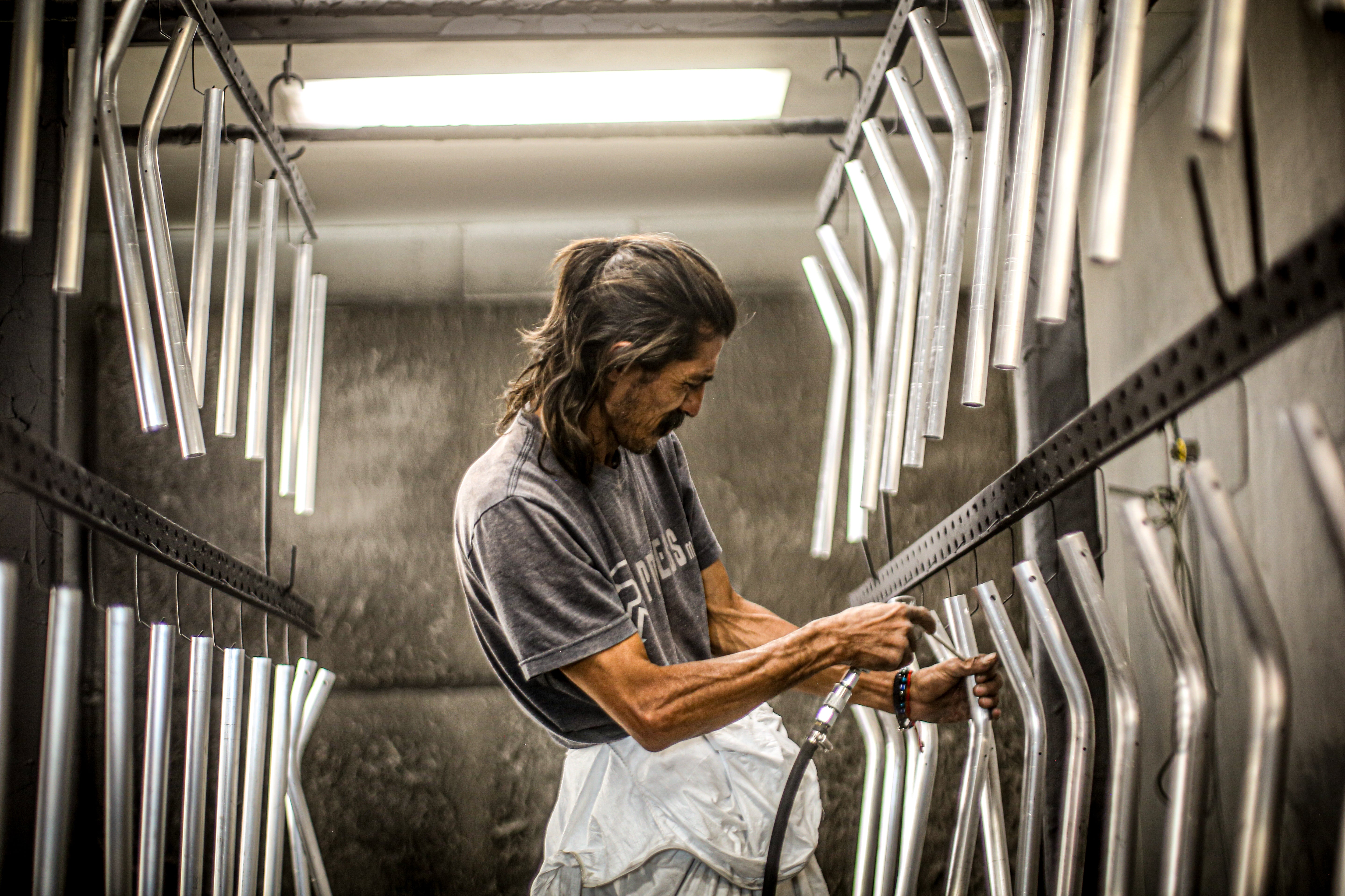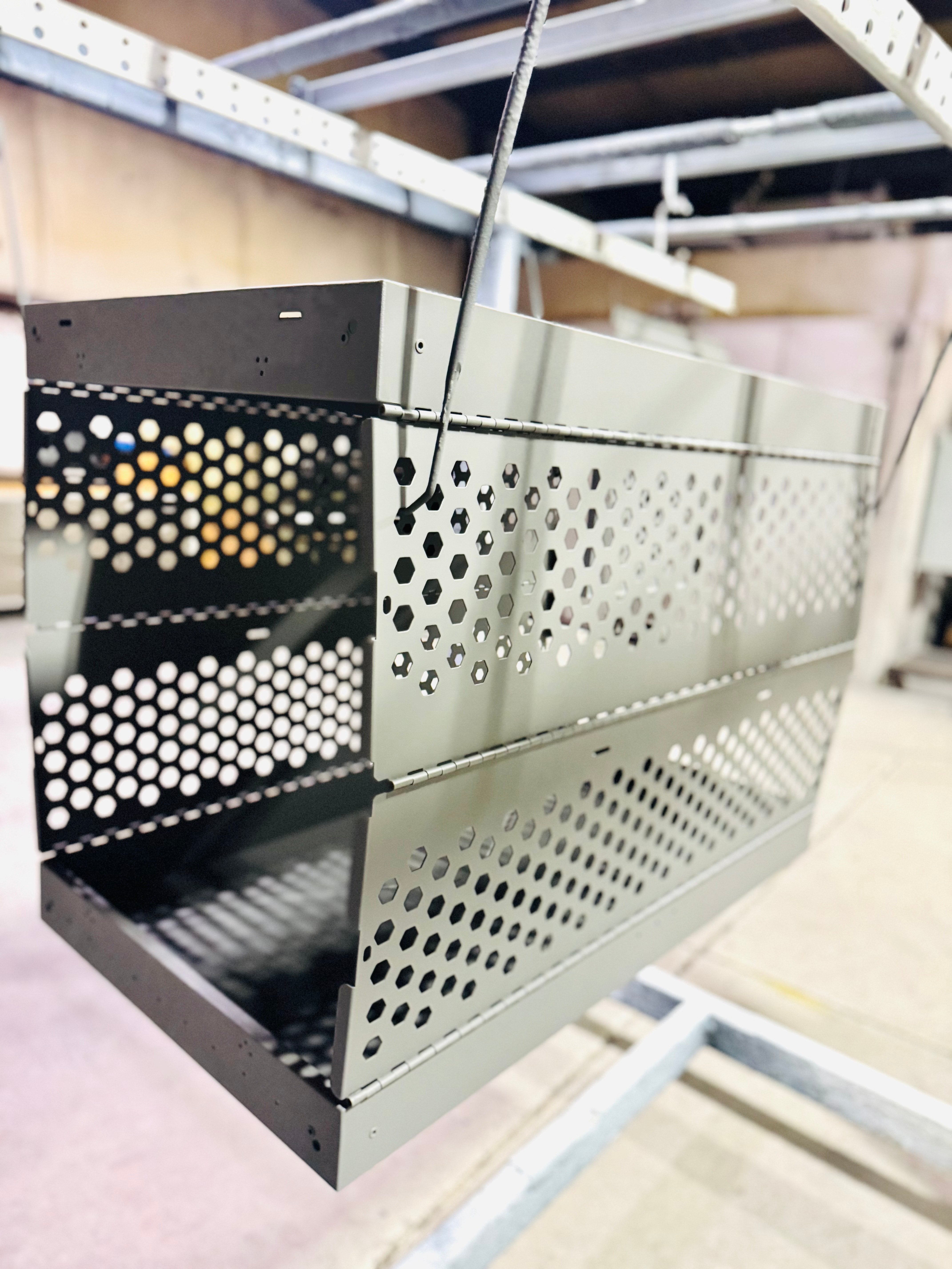Powder coating is a solution that applies a durable and high-quality finish to surfaces. This protective coating is created by electrostatically charged particles, ensuring a smooth and consistent application. Our oven is 20' x 10' and can accomodate anything from large fence rails to racks of small keychains.